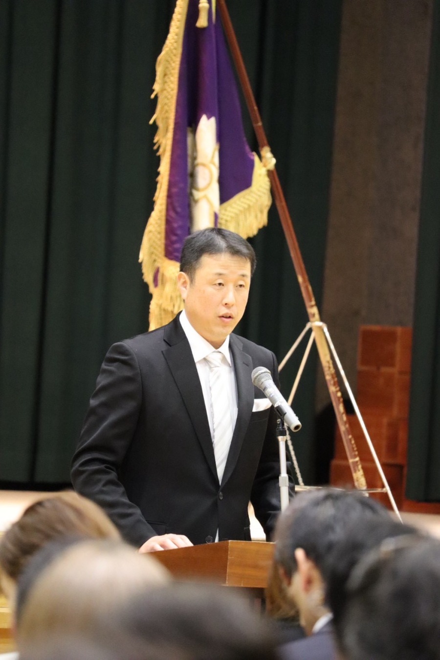 保護者の皆さまにおかれましては、これまでお子様を支え、本日を迎えられましたことに、心よりお祝い申し上げます。これからも、時として親の胆力が必要になることがあるかもしれませんが、温かく見守りながら、時にそばに立って支え、そして背中を押してあげてください。私も同じ保護者の一人としてお子様たちを、そして、皆さまを応援したいと思います。