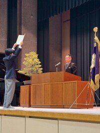 卒業証書授与では、担任の先生から1人ひとり名前が呼ばれ、生徒たちは力強く返事し、普通科355名の総代として森谷桜也くん、理数科40名の総代として符波宗志くんが卒業証書を受け取りました