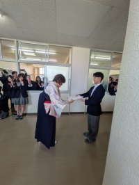 教室に戻った卒業生には担任からひとりずつ卒業証書が手渡され、