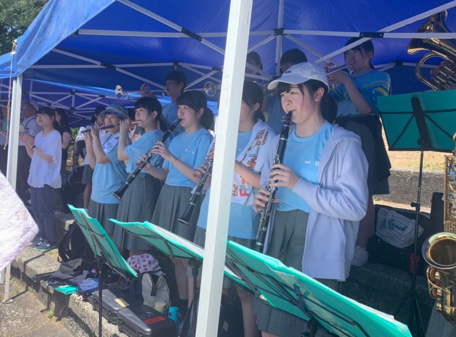 強い日差しにも負けずに、応援団、チアリーダー部、吹奏楽部、一年生が一丸となって選手たちを応援しました!