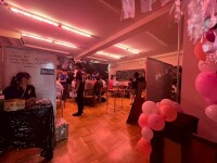 入場待ちの長いお客さまの列の先には、淡い赤色の教室がありました。
