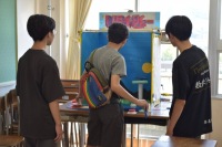 SSHロボット部では、ダンボールで作られたミニクレーンゲームの展示や、未経験者もOKのプログラミング体験などがありました。ミニクレーンゲームは実際に遊ぶこともできました!