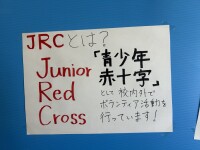 JRC同好会のみなさんは、学校内外で、ボランティア活動をされています。JRCとはJuniou Red Crossの略です(青少年赤十字)。
