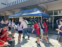 そしてポスター。チーズの魅力に引き込まれました。テントの上の広告は、校舎からも目を引く集客力ありました。