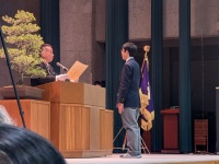 中村一泉同窓会会長、村谷PTA会長の祝辞、在校生の送辞に続いて、