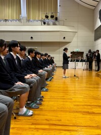卒業証書授与では、担任の先生から1人ひとり名前が呼ばれ、生徒たちは力強く返事し、普通科355名の総代として森谷桜也くん、理数科40名の総代として符波宗志くんが卒業証書を受け取りました